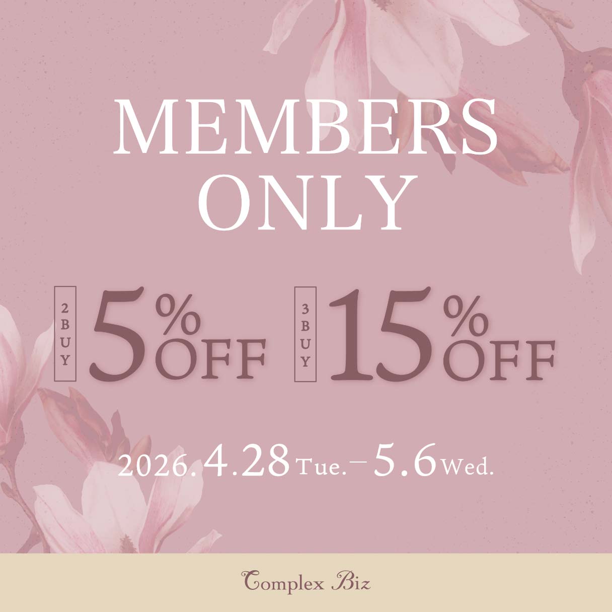 コンプレックス ビズ公式オンラインショップでは、2026年4月28日(火)より会員様限定で「GW Special Offer」を開催いたします。