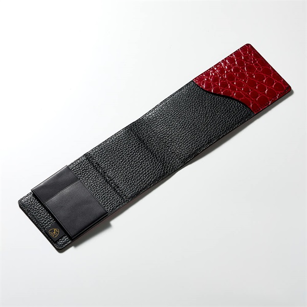本製品は、厳選された天然クロコダイルレザーを使用しております。天然素材の特性上、革本来が持つ細かなキズやシワ、斑(色の濃淡)が見られる場合がございますが、それらは欠点ではなく一点一点に異なる表情を与える天然クロコダイルならではの「唯一無二の証」です。天然素材ならではの奥行きと風格としてご理解ください。