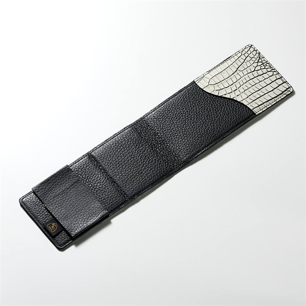 本製品は、厳選された天然クロコダイルレザーを使用しております。天然素材の特性上、革本来が持つ細かなキズやシワ、斑(色の濃淡)が見られる場合がございますが、それらは欠点ではなく一点一点に異なる表情を与える天然クロコダイルならではの「唯一無二の証」です。天然素材ならではの奥行きと風格としてご理解ください。