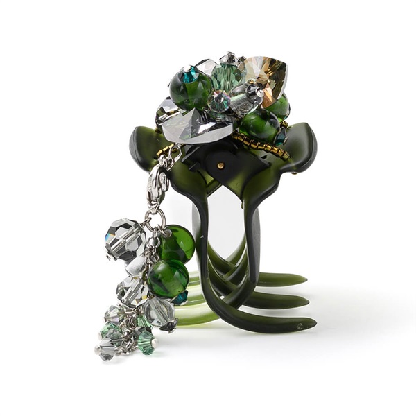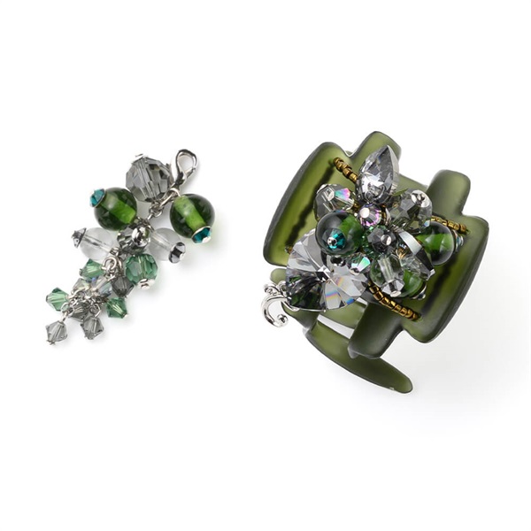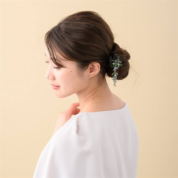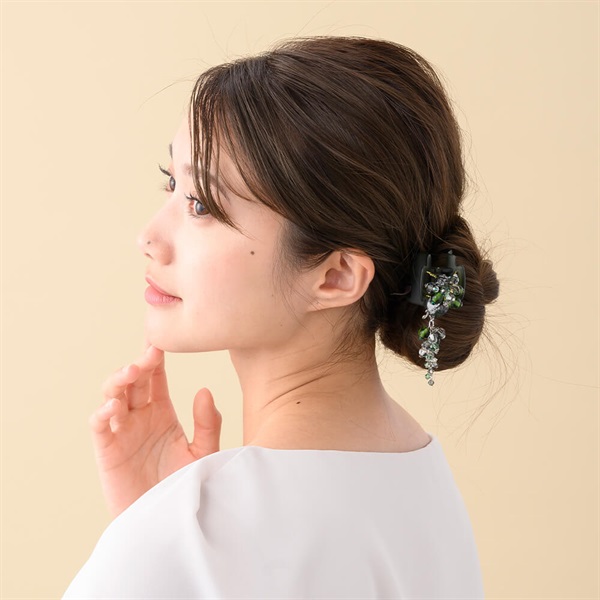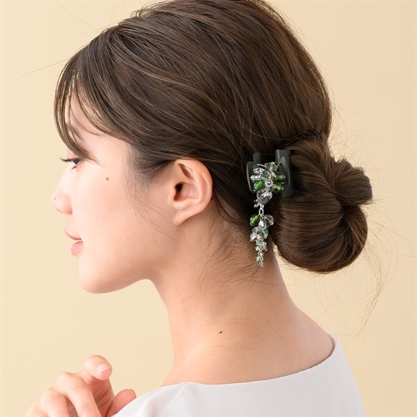 ◆デザインぎゅっとまとめたビーズが透き通るような輝きを放つクリップ。揺れるたびに光を受けて艶やかにきらめくフリンジが、ヘアアレンジに華やぎを添えます。
