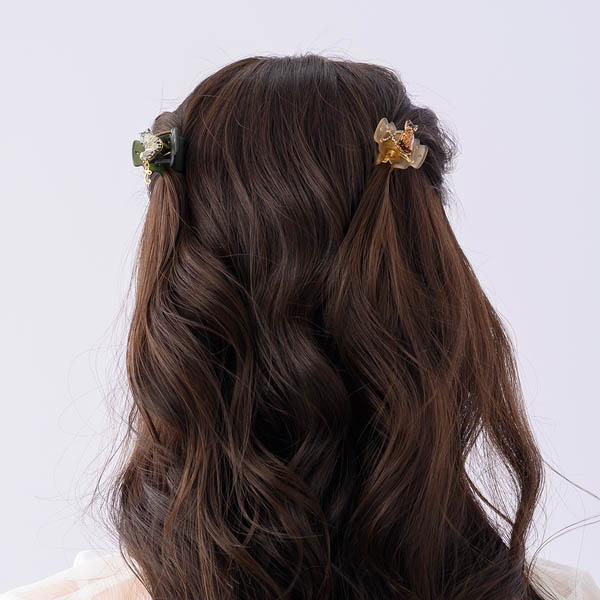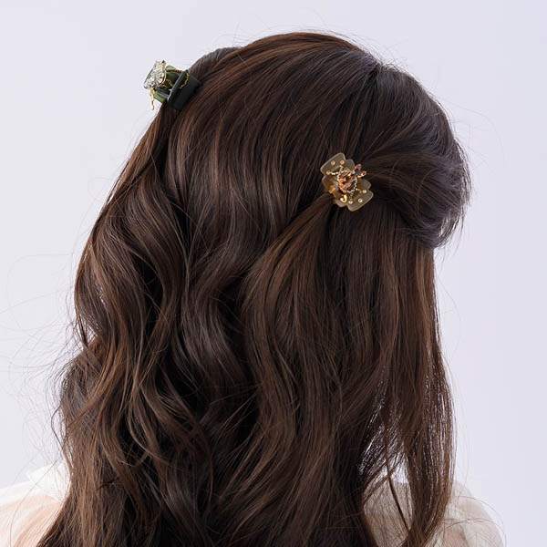 ◆アイテム デザートクリップのベースのクリップはアセテート樹脂を使用しているため、柔軟性があり髪質を選ばないのが特徴です。 またバネが強くしっかりと髪をホールドするので髪の量を問わずお使いいただけます。 そのクリップに女性が大好きなデザートをイメージし、デコレーション(装飾)を施したヘアアクセサリーがデザートクリップです。 コレクターズアイテムとしても人気アイテムのひとつです。