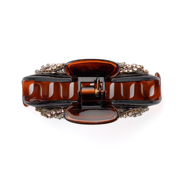 メッシュ状に配したスワロフスキー・クリスタルの輝きが視線を惹きつけるバンスクリップ。印象的なツイストデザインが、ヘアスタイルに存在感を与えます。