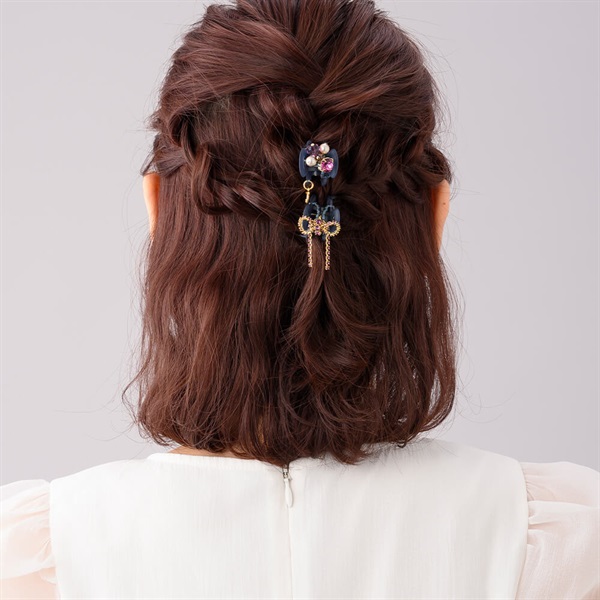 ◆デザイントレンド感のある華奢なチェーンリボンとスワロフスキー・クリスタルの組み合わせが新鮮な印象のホイップクリップ。2個セットでさまざまなヘアアレンジをお楽しみいただけます。