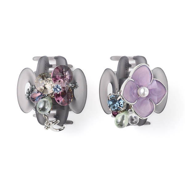 ◆デザイン可愛らしく艶めくフラワーモチーフと、美しく光るスワロフスキー・クリスタルの異なる印象が楽しめるクリップ。ほのかに香る可憐な花のようにフェミニンな魅力をさりげなく演出します。