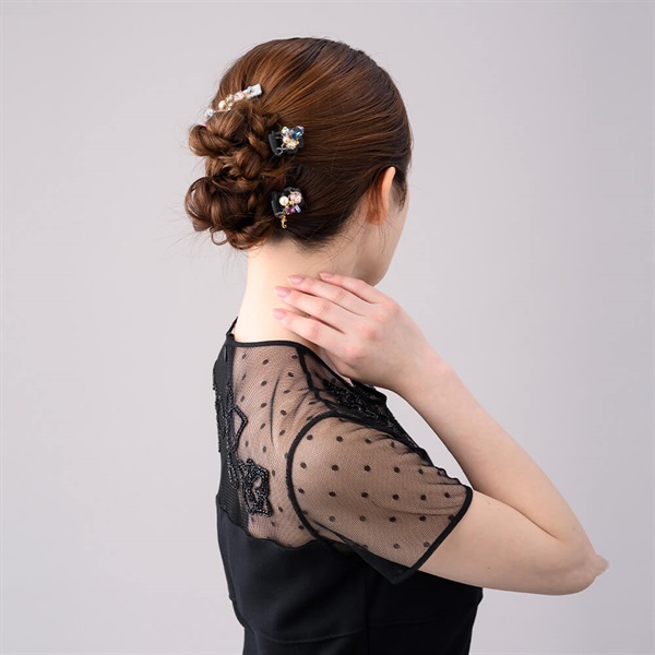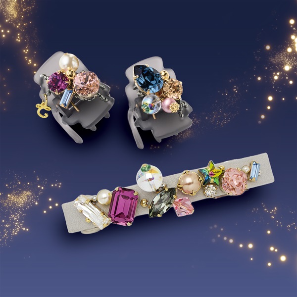 ◆デザインスワロフスキー・クリスタルのひと粒ひと粒に、大切な思い出を閉じ込めたようなデザートクリップ。繊細な輝きが、心に残るワンシーンを彩ります。
