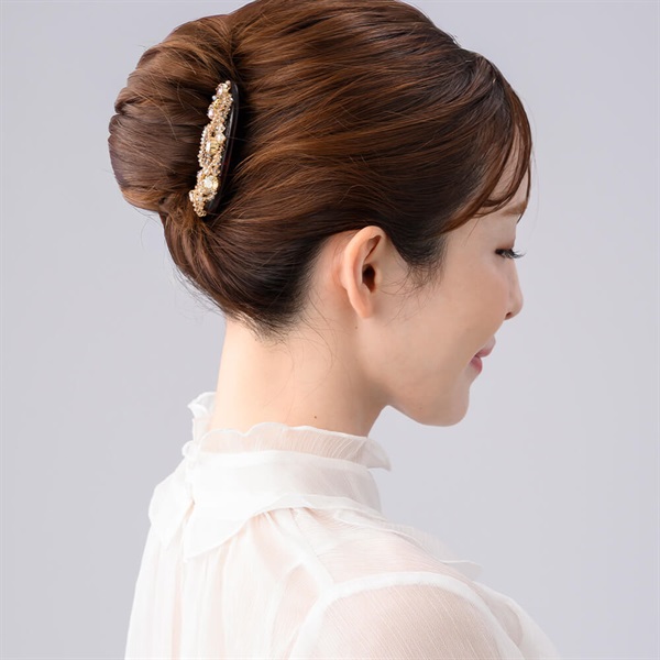 ◆アイテム髪の量や質を選ばず、まとめ髪が自由自在に仕上がるフレンチコーム。アイテムひとつでヘアアレンジが上品に決まります。コロンと可愛らしいシルエットは、飾っておくだけで幸せな気分に。