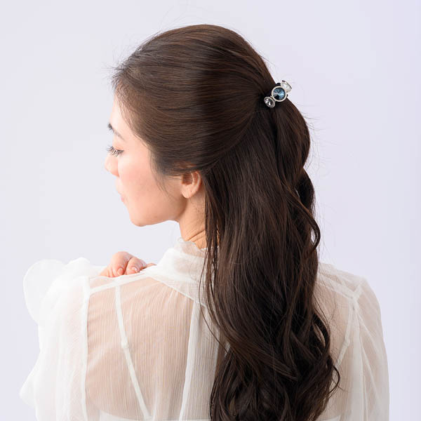 ごろっと大粒のスワロフスキー・クリスタルは宝石のよう。石座は可動式になっているため、ヘアアレンジも簡単です。