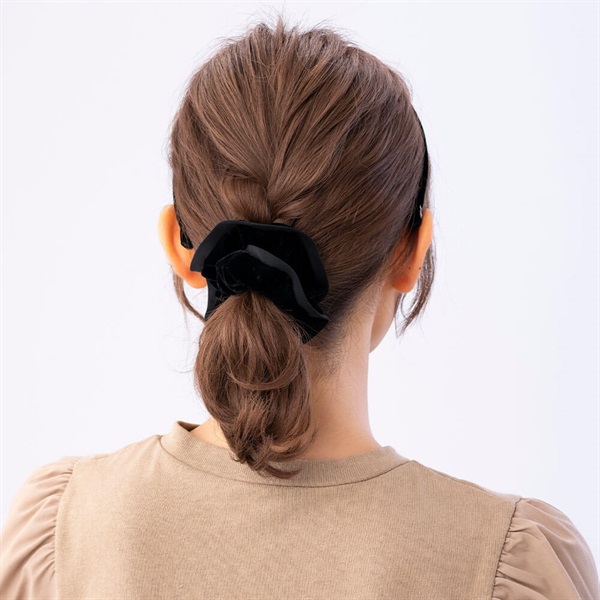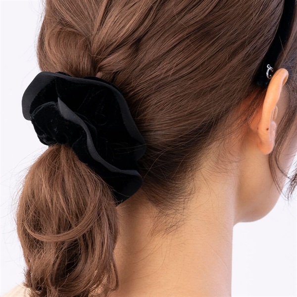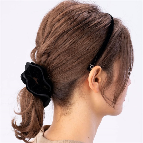 流行に左右されないシンプルでスタンダードなデザインです。秋冬のお洋服とのバランスが取りやすい、ほどよくボリューミーなサイズ感。シュシュひとつでポニーテールが華やかな印象になります。