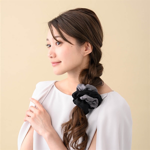 ◆アイテム ひとつでまとめ髪が華やかな印象になるシュシュ。 シュシュで結ぶとゆるみやすい、髪のボリュームが少なめの方は、先にベースを作ってからのご使用をおすすめいたします。 ※お使いのディスプレイにより色味が異なって見える場合がございます。