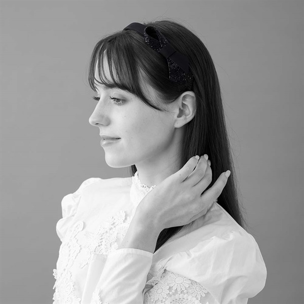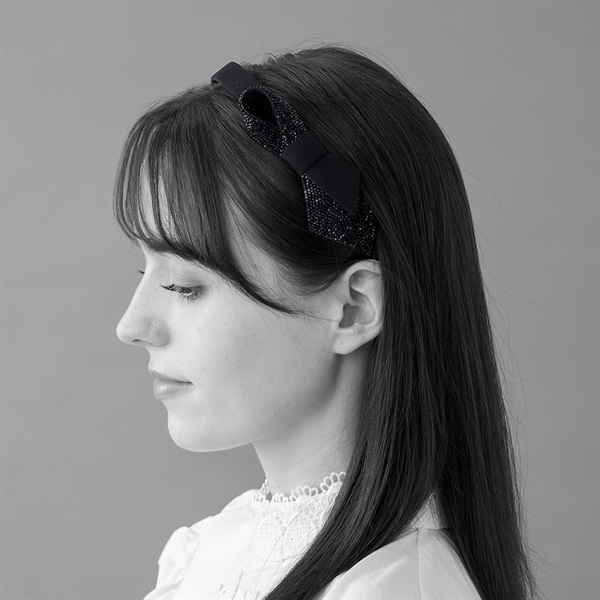 シンプルなリボンデザインのヘアバンドは、スワロフスキー・クリスタル ロックスのきらめきが華やかな横顔を演出。