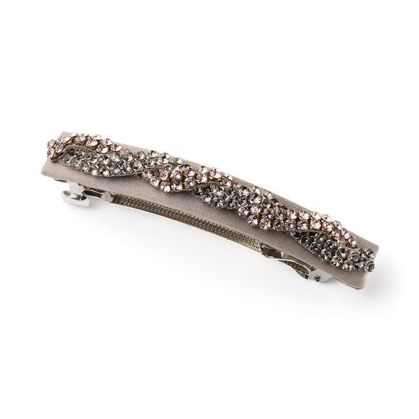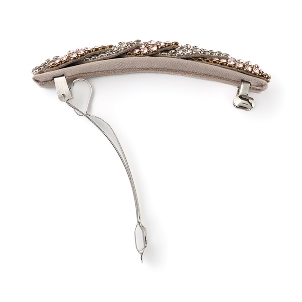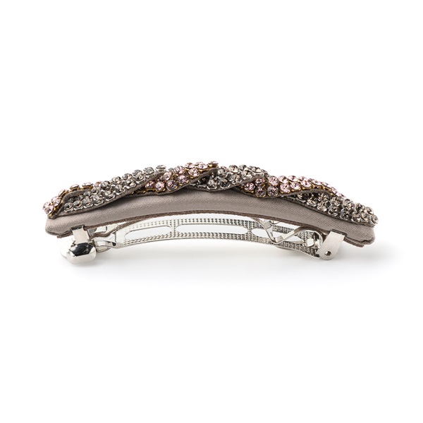 メッシュ状に配したスワロフスキー・クリスタルの輝きが視線を惹きつけるバレッタ。印象的なツイストデザインが、ヘアスタイルに存在感を与えます。