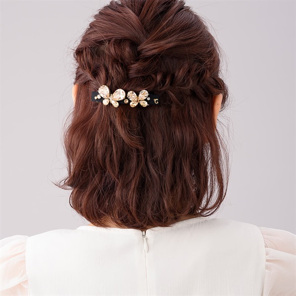 ◆デザイン存在感のあるバタフライモチーフをスワロフスキー・クリスタルで描いたバレッタ。ひとつで大人可愛いスタイリングを完成させます。