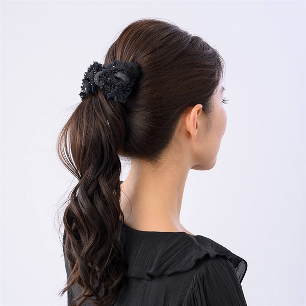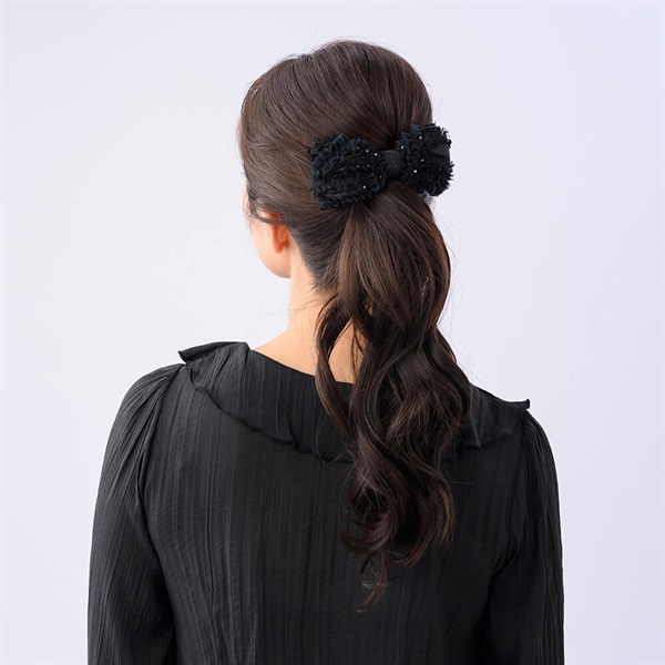 ◆アイテムコンプレックス ビズのバレッタ金具は髪をしっかり挟み、ずれ落ち難い構造。ハーフアップの飾りや、まとめ髪の仕上げ、ダウンスタイルのアクセントにもおすすめです。