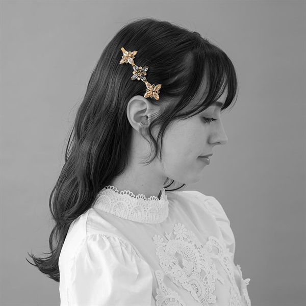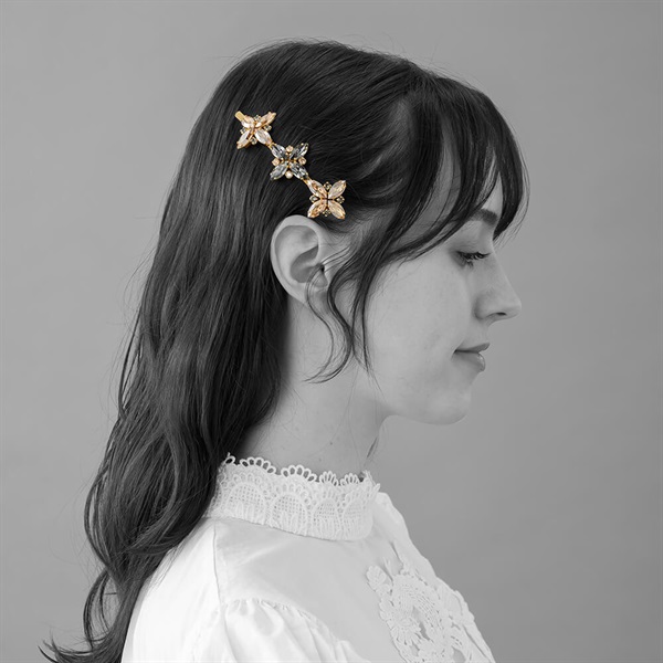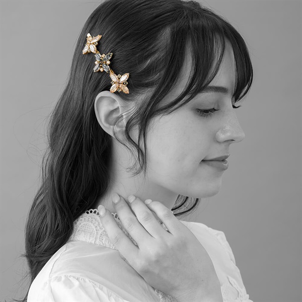 ◆デザインスワロフスキー・クリスタルの輝きと洗練されたフォルムが、横顔に華やかなアクセントを加えます。