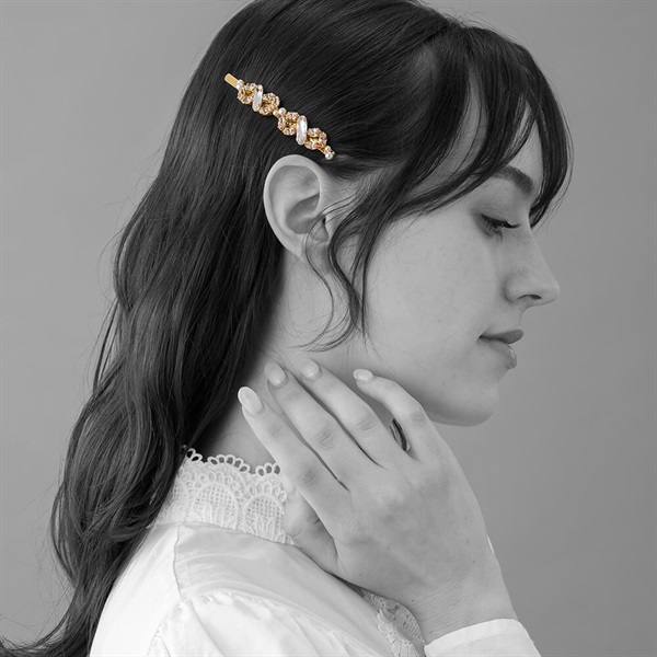 髪を留めるためだけでなく、ランダムに複数着けたり、数本あればヘアアレンジは無限大。