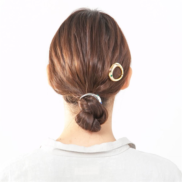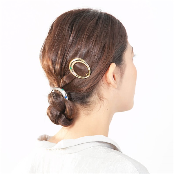陶器のような繊細さと装飾をイメージしたデザイン。モチーフには天然石があしらわれており髪に彩りを与えてくれます。