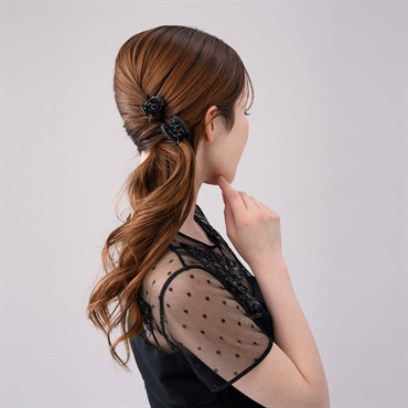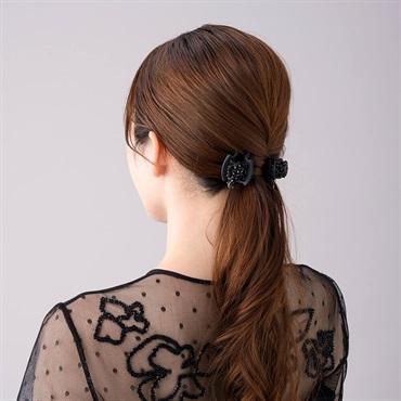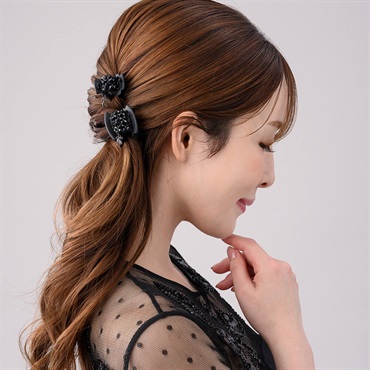 クリスタルメッシュパヴェリボン ヘアバンド(ブラック)