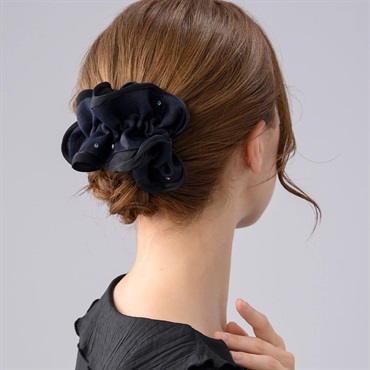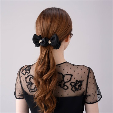 クリスタルメッシュパヴェリボン ヘアバンド(ブラック)