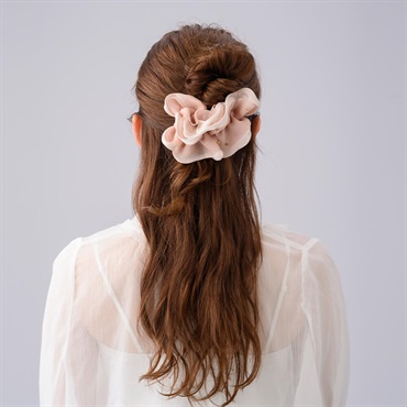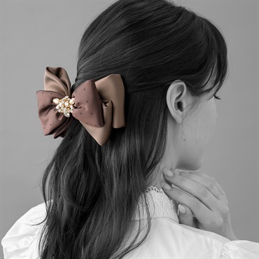 クリスタルメッシュパヴェリボン ヘアバンド(ベージュ)