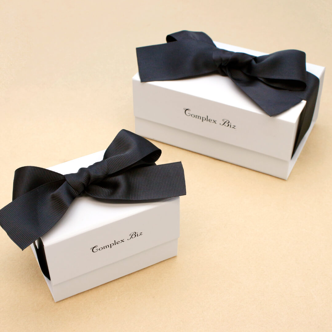 ご購入商品が入る、コンプレックス ビズのオリジナルラッピングにてお届けいたします。Complex Biz LUXE対象商品をご購入の方への、特別ラッピングもご用意しております。